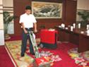 6、在清洗地毯的同時,用吸水機吸凈已洗完的地毯